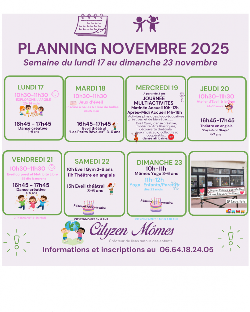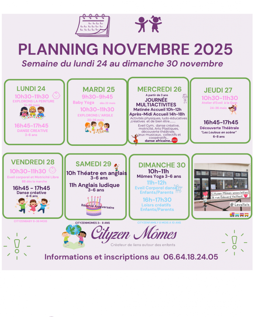 Planning des ateliers enfants à Levallois – Novembre 2025