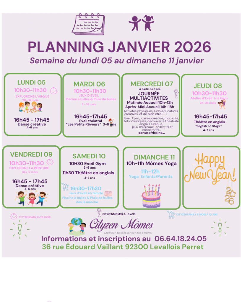Cityzen Mômes propose tout au long du mois de janvier 2025 une programmation variée d’ateliers pour enfants à Levallois-Perret.