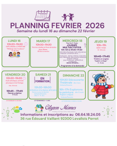 SEMAINE 16 FEVRIER Publié le 17 février 202617 février 2026 par Cityzen Mômes Planning des atelier sde la semaine du lundi 16 au dimanche 22 février