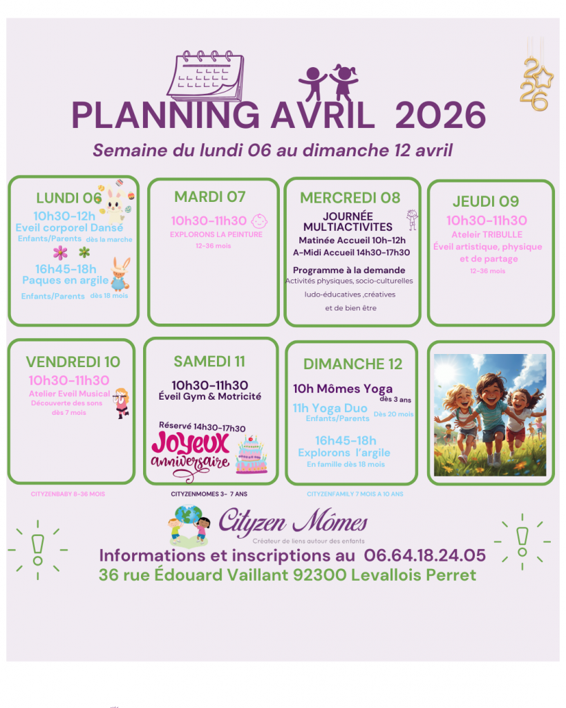 Cityzen Mômes propose tout au long du mois d’avril 2025 une programmation variée d’ateliers pour enfants accompagnés ou non d’un adulte de la famille , à Levallois-Perret.